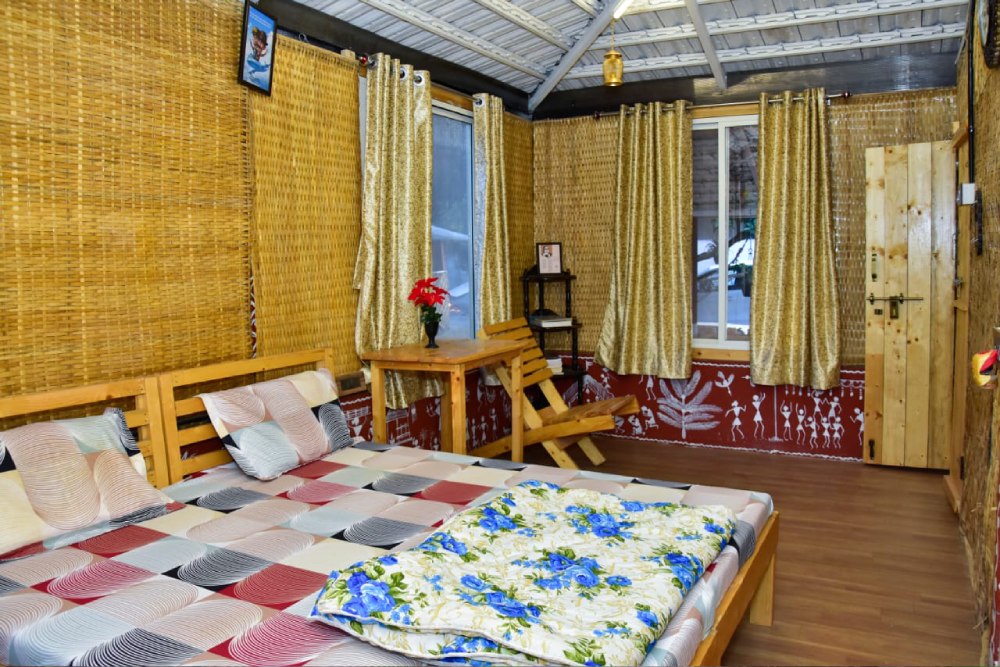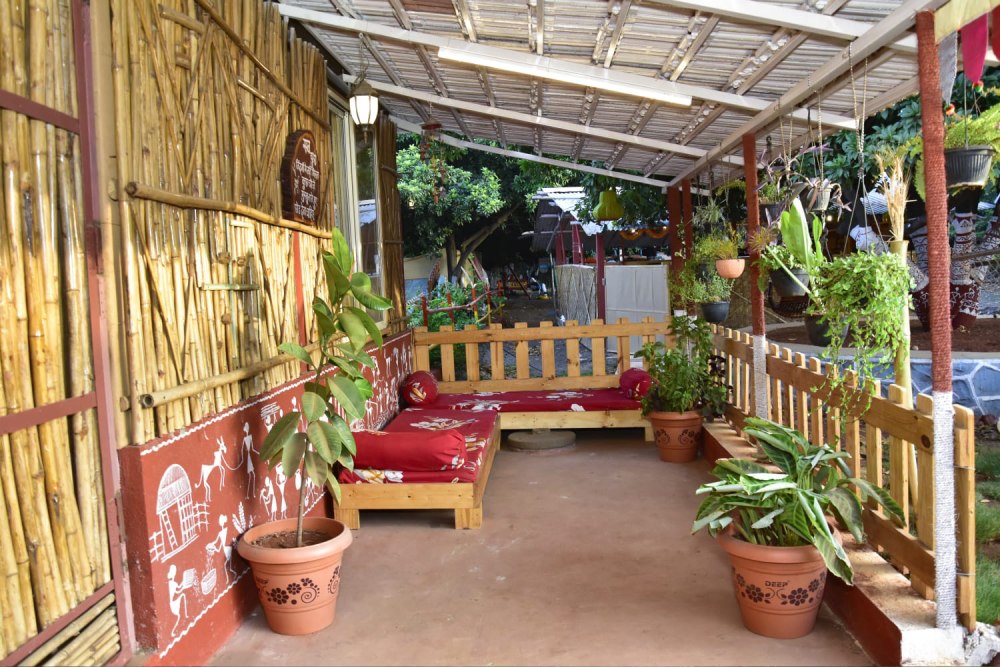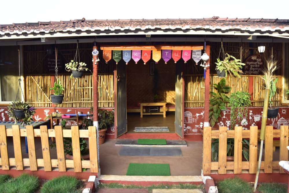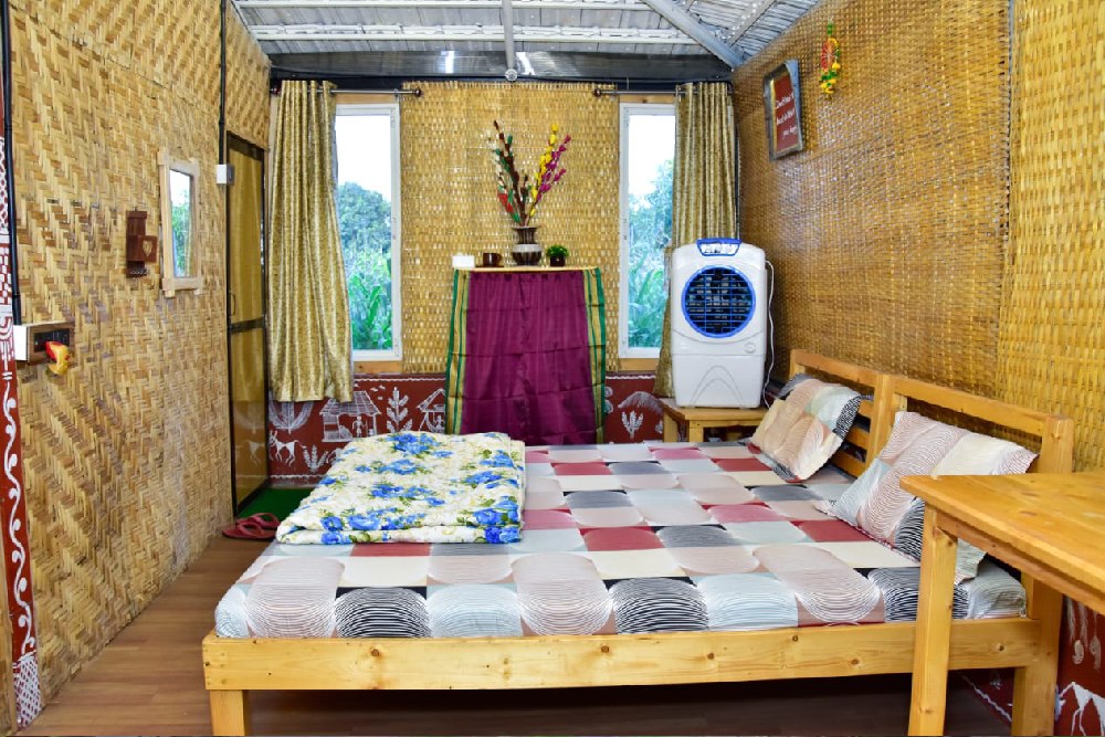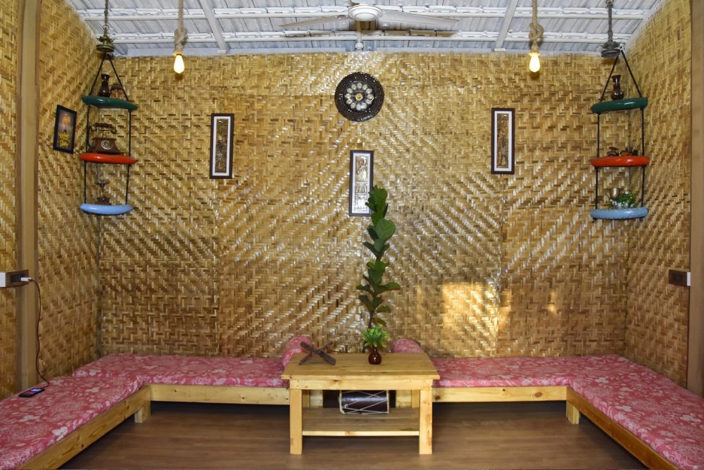 The bamboo house experience at Vedkasturi Agro is a harmonious blend of sustainable living and modern comfort, offering guests a unique opportunity to reconnect with nature in a truly eco-friendly setting. Crafted with precision and care using locally sourced bamboo, these charming structures provide a cozy and inviting retreat amidst the serene beauty of the countryside. Step into your bamboo abode and feel instantly enveloped by a sense of tranquility and warmth. The natural beauty of bamboo, with its earthy hues and organic textures, creates a soothing ambiance that invites relaxation and rejuvenation. Designed to seamlessly integrate with the surrounding environment, each bamboo house offers panoramic views of the lush landscape, allowing guests to immerse themselves in the sights and sounds of nature.